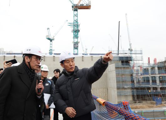 오세훈 서울시장이 12일 서울 노원구 월계동 광운대역 물류부지 공사현장을 방문해 둘러보고 있다./연합뉴스 |