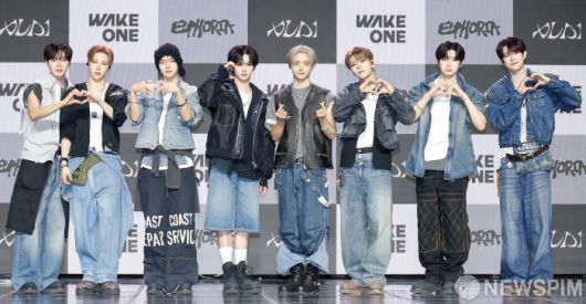 [서울=뉴스핌] 류기찬 기자 = 신인 보이그룹 알파드라이브원 멤버들이 12일 오후 서울 용산구 블루스퀘어 SOL트래블홀에서 열린 데뷔 기념 쇼케이스에서 포토타임을 가지고 있다. 2026.01.12 ryuchan0925@newspim.com