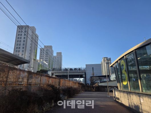 가좌역 지상 철도길 모습. 지상철도길 옆 주거단지와 일부 상권이 형성돼 있다. (사진=박지애 기자) |
