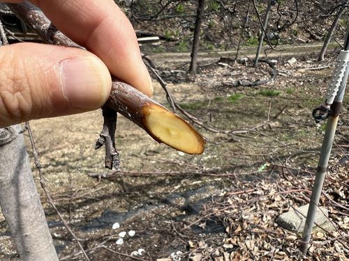산불 열상 피해 사과나무 가지 |
