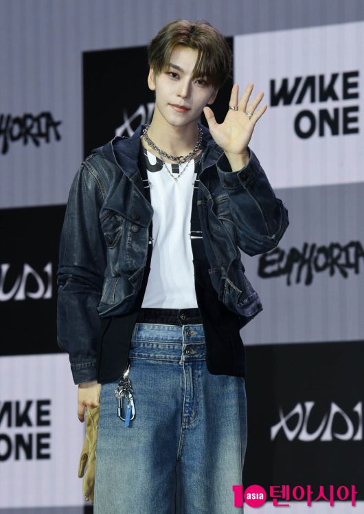 [텐아시아=조준원 기자]그룹 알파드라이브원(ALPHA DRIVE ONE/리오, 준서, 아르노, 건우, 상원, 씬롱, 안신, 상현) 씬롱이 12일 서울 용산구 블루스퀘어에서 열린 미니 1집 ‘EUPHORIA’(유포리아) 쇼케이스에 참석하고 있다.