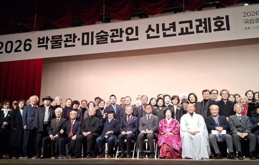 문화체육관광부와 한국박물관협회는 12일 오후 서울 이촌동 국립중앙박물관 대강당에서 2026년 ‘전국 박물관·미술관인 신년교례회'를 열어 박물관·미술관 발전에 공을 세운 관계자 28명에게 표창을 줬다. 최휘영 장관과 유홍준 국립중앙박물관장, 김성희 국립현대미술관장, 조한희 한국박물관협회장, 김종규 전 한국박물관협회장, 수덕사근역성보박물관장 주경 스님 등과 관계자 400여명이 참석한 가운데 열린 이날 행사에서는 김은경 온양민속박물관장과 박춘순 해든뮤지엄 관장이 대통령 표창을 받았다. 김 관장은 2019년 이후 14차례 특별전을 열면서 전문도록 10권을 펴내 전통문화 계승에 진력했고, 박 관장은 문화 소외 지역이던 인천·강화에 현대미술 저변을 넓히는 전시를 만들어 문화 격차 해소에 힘썼다는 평가를 받았다. 국무총리 표창은 지난해 ‘뮷즈'(박물관 문화상품) 열풍의 계기를 만든 김미경 국립박물관문화재단 상품사업본부장과 박선주 영은미술관장, 김종회 황순원문학촌 소나기마을 촌장이 받았다. 고미경 국립인천해양박물관 전시기획부장 등 15명과 이지은 양산시립박물관 학예연구사 등 8명에게는 문체부 장관 표창을 줬다. 최 장관은 새해 인사를 통해 “지난해 국립중앙박물관 관객이 650만 명을 넘어서는 등 박물관·미술관에 대한 국민의 뜨거운 사랑을 확인했다”면서 “박물관·미술관 사업을 문화로 경제적 가치를 창출하는 미래 성장산업으로 키워 문화강국 길을 여는 주춧돌로 만들겠다”고 말했다.