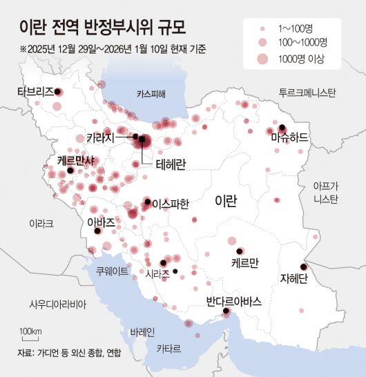 이란에서 벌어지고 있는 유혈 사태가 악화일로를 걷자 트럼프 행정부의 움직임도 빨라지고 있다. WSJ는 트럼프 대통령이 13일 안보 관련 참모들로부터 이란 시위 대응을 위한 구체적인 옵션을 보고받을 예정이라고 보도했다. 이 회의에는 마코 루비오 국무장관·피트 헤그세스 국방장관·댄 케인 합참의장 등이 참석할 것으로 예상된다.