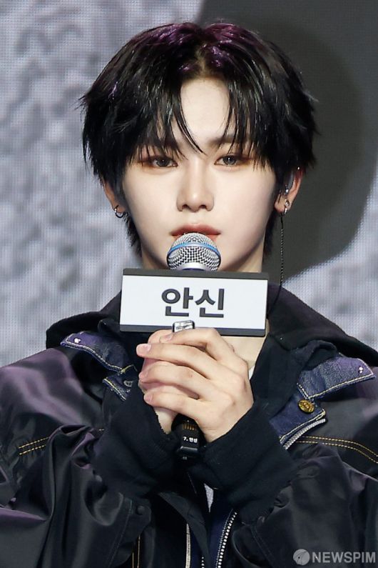 [서울=뉴스핌] 류기찬 기자 = 신인 보이그룹 알파드라이브원 멤버 안신이 12일 오후 서울 용산구 블루스퀘어 SOL트래블홀에서 열린 데뷔 기념 쇼케이스에서 인사말을 하고 있다. 2026.01.12 ryuchan0925@newspim.com