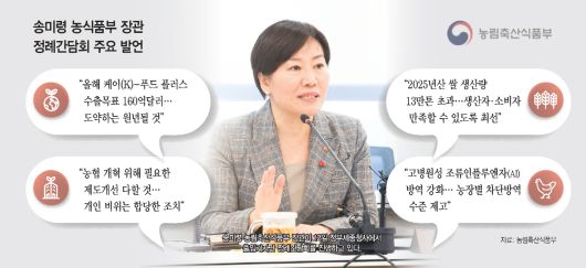 송 장관은 이날 오전 정부세종청사에서 출입기자단 정례간담회를 열고 이같이 말했다. 농식품부는 주요 정책 및 현안에 대한 이해도 제고 차원에서 기자단과 정기적으로 간담회를 진행하고 있다.