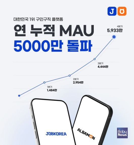 잡코리아·알바몬 연간 누적 MAU 5천만 돌파 ⓒ잡코리아 |