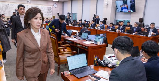 12일 국회에서 열린 법제사법위원회 전체 회의에서 나경원 의원을 비롯한 국민의힘 법사위원들이 이날 회의에 상정된 2차 종합특검 법안 처리를 반대하는 의사를 밝힌 뒤 퇴장하고 있다. [사진=연합뉴스] |