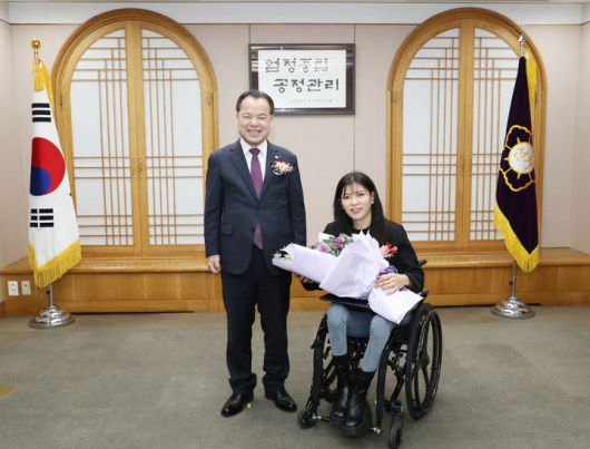 [서울=뉴시스] 중앙선거관리위원회가 12일 개최한 '비례대표 국회의원 의석 승계자 결정 통지서 수여식에서 위철환 중앙선관위 상임위원과 이소희 의원이 기념사진을 촬영하고 있다. (사진=중앙선관위 제공) *재판매 및 DB 금지 |