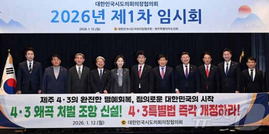 대한민국시도의회의장협의회는 12일 오후 서귀포시 그랜드조선제주에서 올해 첫 임시회를 열고 '4 ·3특별법 개정 촉구 건의안'을 공식 채택했다.