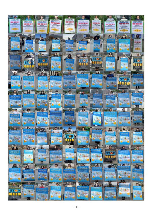 후쿠시마 방사능 오염수 방출 반대 릴레이 1인 시위 1회~200회의 모습을 담은 사진이다. |