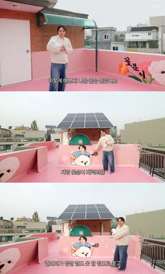 (엑스포츠뉴스 장주원 기자) 배우 구성환이 꽃분이가 담긴 핑크빛 옥상의 모습을 공개했다.