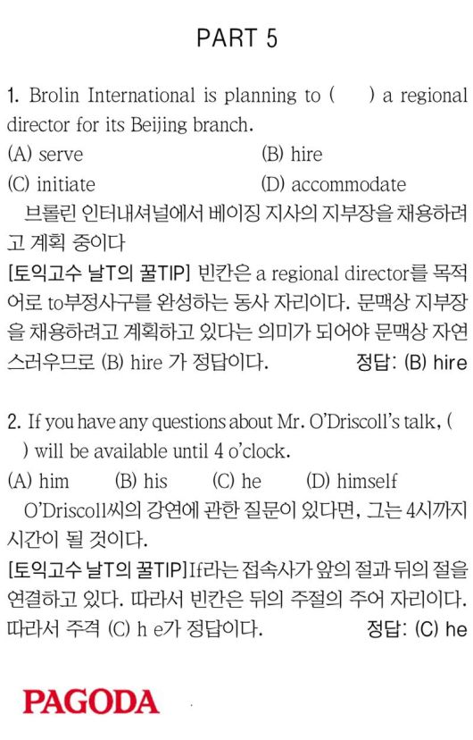 [파고다 강남 끝토익 RC김나래] PART 5
