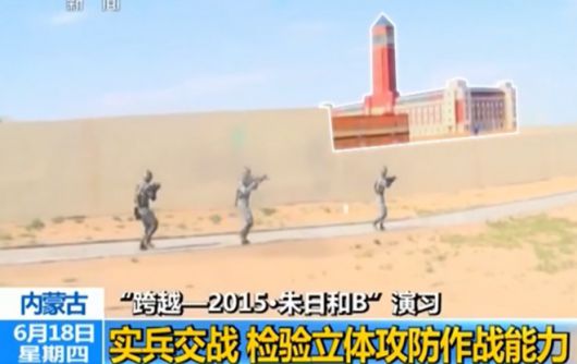 중국군이 대만 총통(대통령)부를 모방한 건물이 있는 네이멍구 군사기지에서 참수작전을 훈련하고 있다. 중국 중앙(CC)TV 캡처 |
