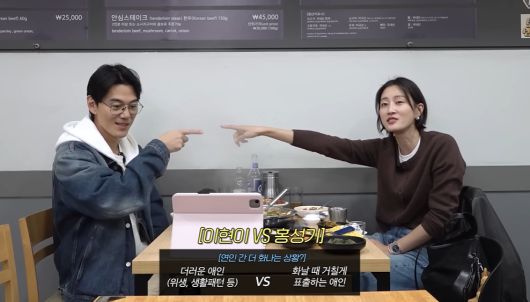 공개된 영상에서 이현이, 홍성기 부부는 연인 사이에서 더 화가 나는 상황을 주제로 밸런스 게임을 진행했다. 두 사람은 위생과 생활 패턴이 문제인 '더러운 애인'과, 화가 날 때 '감정을 거칠게 표출하는 애인' 중 하나를 선택해야 했다.