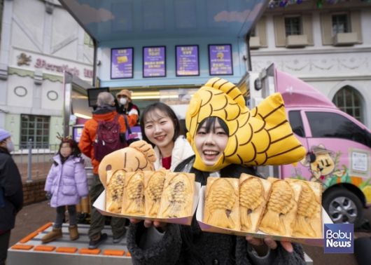 대형 붕어빵을 든 베이글 캐릭터와 함께하는 포토타임은 필수 인증샷 코스로 자리 잡았으며, 모자, 인형, 핫팩 등 다양한 붕어빵 굿즈도 선보이고 있어 알파인 빌리지 일대가 거대한 붕어빵 테마존으로 변신했다.