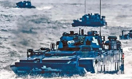 신문에 따르면 인공위성 화상 등 분석 결과 지난해 7월16일 광둥성 산웨이시 앞바다에서 화물 적재 트럭 등을 수송할 수 있는 중국 화물선과 중국군 수륙양용차 11대가 확인됐다. 당시 화물선은 정지 상태였으며 수륙양용차는 그 뒤에서 1열로 항행하고 있었다. 이에 대해 오하라 본지 사사가와재단 연구원은 “화물선을 동원해 수륙양용차를 내리거나 탑재하는 연습을 하고 있었을 가능성이 있다”고 분석했다.