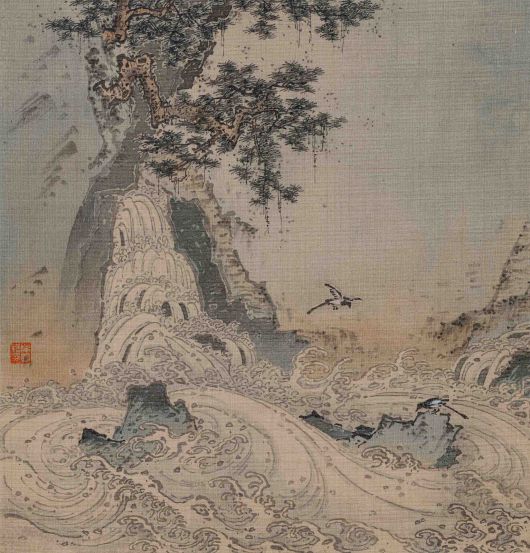 '쌍금청폭도 雙禽聽瀑圖'(2026)는 폭포를 마주한 두 새의 모습을 통해 자연의 소리와 정적을 화면에 담아냈다. 소형 화면 안에 여백과 필선의 균형을 집중적으로 드러내며, 고화 양식을 참조한 구성과 절제된 색채가 특징이다.