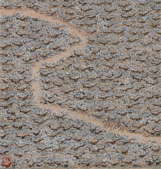'심매방우도 尋梅訪友圖'(2026)와 '고매도 古梅圖'(2025)는 전통 소재인 매화를 중심에 둔 작업이다. 두 작품은 작가가 전통을 어디까지 본으로 삼는지 비교해서 볼 수 있는 흥미로운 구성이다. 전자는 봄맞이 매화처럼 반가운 벗을 방문하는 전통적 서사를, 후자는 매화의 구도를 본받은 셈이다. 즉 작가에게 전통이란 그림이라는 형체만이 아니라 그 원리인 것이다.