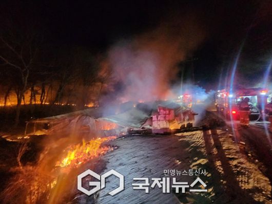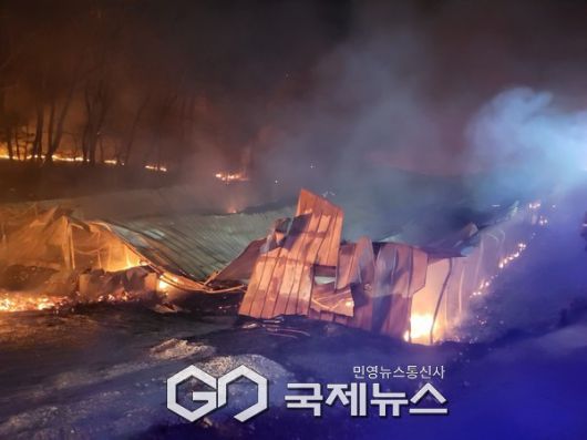 (김포=국제뉴스) 손창민 기자 = 12일 새벽 경기 김포시 대곶면의 한 농장에서 화재가 발생해 축사 5동이 전소되고 가축 30마리가 폐사하는 안타까운 사건이 발생했다.