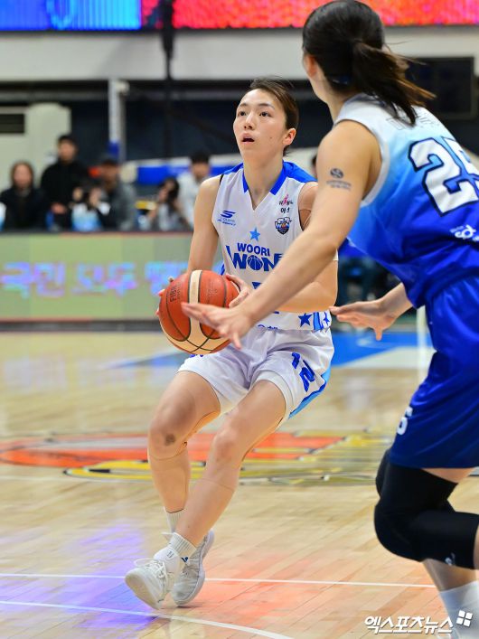 (엑스포츠뉴스 인천, 김한준 기자) 12일 오후 인천광역시 중구 도원체육관에서 열린 'BNK 금융 2025-2026 여자프로농구' 신한은행과 우리은행의 경기, 우리은행 아야노가 점프슛을 시도하고 있다.김한준 기자 kowel@xportsnews.com
