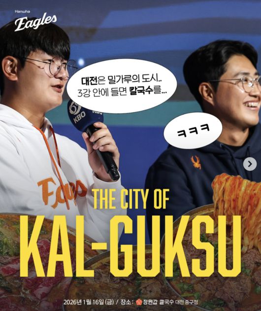 약속을 지키기 위함이다. 마무리 김서현은 지난해 3월 열린 개막 미디어데이&팬페스트에서 우승 공약을 언급한 바 있다. “홈구장에 국내 최초 인피니티 풀이 있으니, 목표인 3강에 들면 선배님들과 함께 입수하겠다. 그리고 대전은 빵과 칼국수가 유명한, 밀가루의 도시다. 팬 분들을 초청해 칼국수를 만들어 대접해드리고 싶다”고 말했다. 인피니티 풀은 현재 2026시즌 준비로 각종 공사가 진행 중이다. 당장 이행하기 어려운 만큼, 칼국수 대접부터 의견을 모았다.