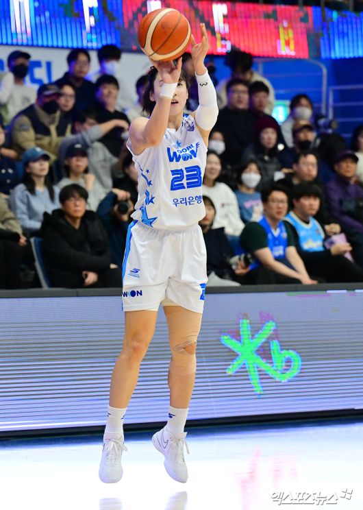 (엑스포츠뉴스 인천, 김한준 기자) 12일 오후 인천광역시 중구 도원체육관에서 열린 'BNK 금융 2025-2026 여자프로농구' 신한은행과 우리은행의 경기, 우리은행 김단비가 3점슛을 시도하고 있다.김한준 기자 kowel@xportsnews.com