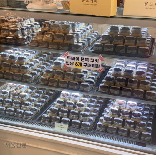 12일 경기 용인시의 한 디저트 판매장 진열대에 ‘두쫀쿠’(두바이 쫀득 쿠키) 구매 개수를 제한한다는 안내문이 붙어 있다. 인스타그램 캡처 |