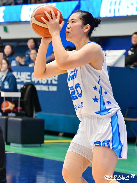 (엑스포츠뉴스 인천, 김한준 기자) 12일 오후 인천광역시 중구 도원체육관에서 열린 'BNK 금융 2025-2026 여자프로농구' 신한은행과 우리은행의 경기, 우리은행 이명관이 3점슛를 시도하고 있다.김한준 기자 kowel@xportsnews.com