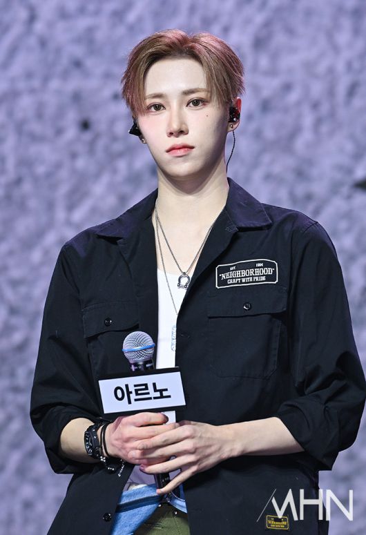 (MHN 이현지 기자) 그룹 알파드라이브원(ALPHA DRIVE ONE) 아르노가 12일 오후 서울 용산구 블루스퀘어에서 진행된 미니 1집 'EUPHORIA'(유포리아) 발매 기념 쇼케이스에 임하고 있다.