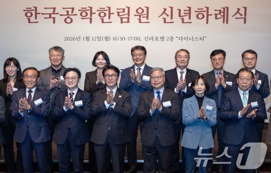 (서울=뉴스1) = 김민석 국무총리와 김정관 산업통상자원부장관이 12일 오후 서울 중구 신라호텔에서 열린 2026년 한국공학한림원 신년하례식에서 참석자들과 기념촬영을 하고 있다. (산업통상자원부 제공. 재판매 및 DB 금지) 2026.1.12/뉴스1skitsch@news1.krCopyright ⓒ 뉴스1. All rights reserved. 무단 전재 및 재배포, AI학습 이용 금지.