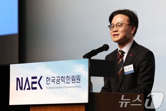 (서울=뉴스1) = 김정관 산업통상자원부장관이 12일 오후 서울 중구 신라호텔에서 열린 2026년 한국공학한림원 신년하례식에서 축사하고 있다. (산업통상자원부 제공. 재판매 및 DB 금지) 2026.1.12/뉴스1skitsch@news1.krCopyright ⓒ 뉴스1. All rights reserved. 무단 전재 및 재배포, AI학습 이용 금지.