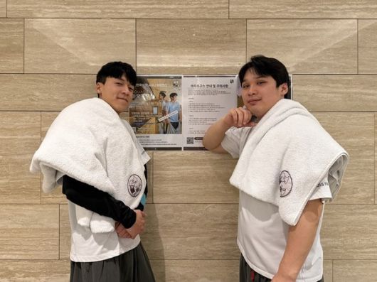 두 남자가 수건을 돌리는 이유는, 사우나 안의 온기를 널리 퍼뜨리기 위해서라고! 대한민국 최초이자, 유일한 사우나 마스터! 일명 아우프구스 전문 기술이라는데.