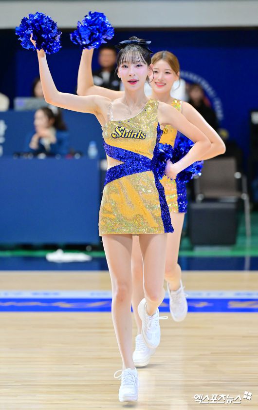 (엑스포츠뉴스 인천, 김한준 기자) 12일 오후 인천광역시 중구 도원체육관에서 열린 'BNK 금융 2025-2026 여자프로농구' 신한은행과 우리은행의 경기, 정희정 치어리더가 멋진 공연을 선보이고 있다.김한준 기자 kowel@xportsnews.com