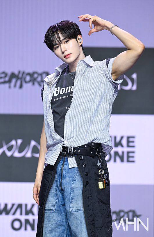 (MHN 이현지 기자) 그룹 알파드라이브원(ALPHA DRIVE ONE) 준서가 12일 오후 서울 용산구 블루스퀘어에서 진행된 미니 1집 'EUPHORIA'(유포리아) 발매 기념 쇼케이스에서 포토타임을 갖고 있다.