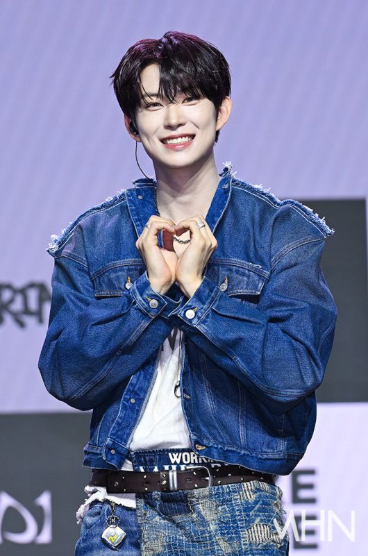 (MHN 이현지 기자) 그룹 알파드라이브원(ALPHA DRIVE ONE) 건우가 12일 오후 서울 용산구 블루스퀘어에서 진행된 미니 1집 'EUPHORIA'(유포리아) 발매 기념 쇼케이스에서 포토타임을 갖고 있다.