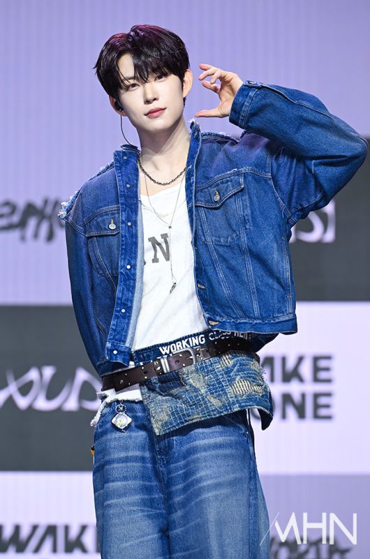 (MHN 이현지 기자) 그룹 알파드라이브원(ALPHA DRIVE ONE) 건우가 12일 오후 서울 용산구 블루스퀘어에서 진행된 미니 1집 'EUPHORIA'(유포리아) 발매 기념 쇼케이스에서 포토타임을 갖고 있다.