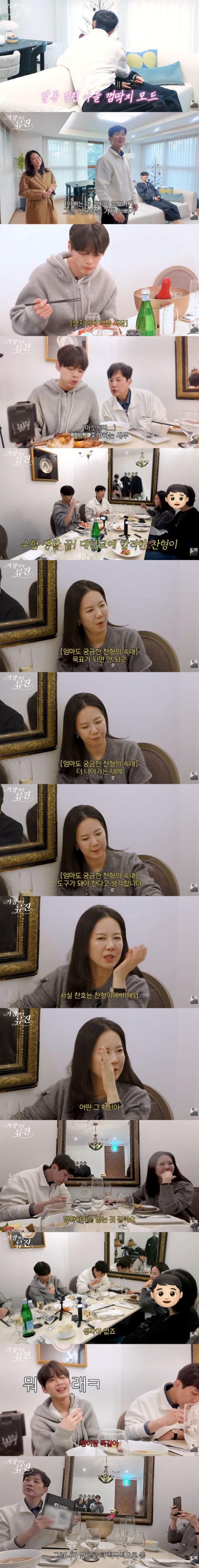 그때 류진은 "찬형아, 식사한 이유 중에 가장 큰 이유가 뭔지 아냐. 크리스마스 뭐 그런 것도 있긴 하지만 고3이었지 않나. 지금 결실을 맺었지 않나. 그거 너무 대견하다"며 대학교에 합격한 찬형 군을 축하했다.
