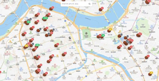 두쫀쿠 판매 매장과 재고를 알 수 있는 지도. [사진=두쫀쿠맵] |