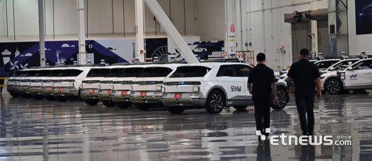 8일(현지시간) 미국 네바다주 라스베이거스 모셔널 테크니컬 센터에 무인 로보택시로 변신한 아이오닉5가 나란히 세워져 있다. 현대자동차그룹의 자율주행 합작법인 모셔널은 연말 라스베이거스에서 레벨4 수준의 '무인 로보택시' 상용화 서비스 계획을 발표했다. 라스베이거스=이동근기자 foto@etnews.com [Copyright © 전자신문. 무단전재-재배포금지]