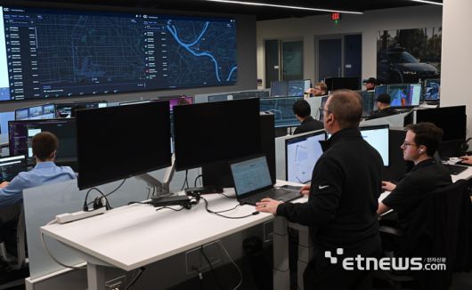 8일(현지시간) 미국 네바다주 라스베이거스 모셔널 테크니컬 내 무인 자율주행 관제센터 모습. 현대자동차그룹의 자율주행 합작법인 모셔널은 연말 라스베이거스에서 레벨4 수준의 '무인 로보택시' 상용화 서비스 계획을 발표했다. 라스베이거스=이동근기자 foto@etnews.com [Copyright © 전자신문. 무단전재-재배포금지]