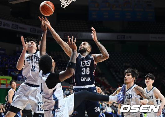 부산 KCC 숀롱이 고양 소노 강지훈의 마크를 피해 골밑슛을 시도하고 있다. 2026.01.12 / foto0307@osen.co.kr