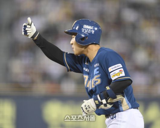 NC 김휘집이 1일 서울 잠실구장에서 열린 2025 KBO리그 LG와 경기 4회초 1사1,2루 좌전안타를 친 후 세리머니를 하고 있다. 잠실 | 최승섭기자 thunder@sportsseoul.com |