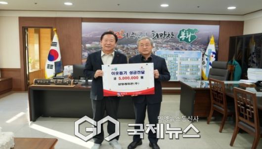 (봉화=국제뉴스) 백성호 기자 = ㈜삼영레미콘 김병남 대표이사는 지난 1월 8일 봉화군청을 방문하여 이웃돕기 성금 500만원을 기탁했다.