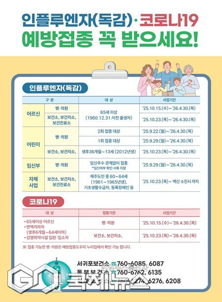 서귀포시 서부보건소 관계자는 "예방접종은 본인뿐 아니라 가족과 이웃을 보호하는 가장 확실한 방법"이라며 "아직 접종하지 않은 분들은 가까운 보건소나 의료기관을 방문해 인플루엔자와 코로나19 예방접종에 적극 참여해 달라"고 말했다.