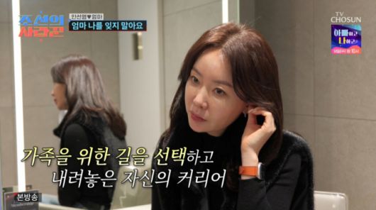 안선영은 "방송일, 아이의 엄마, 엄마의 딸 세 개를 다 할 순 없었다. 그래서 방송일을 포기했다"고 말했다.