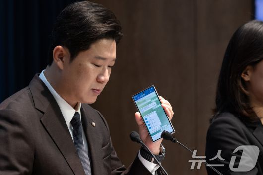 진종오 국민의힘 의원이 지난해 10월 30일 서울 여의도 국회 소통관에서 '민주당 종교단체 신도 3천명 경선 활용 시도 의혹' 기자회견을 하며 보좌관이 전달해준 의혹 관련 녹취록을 재생시키고 있다. 2025.9.30/뉴스1 ⓒ News1 이승배 기자 |