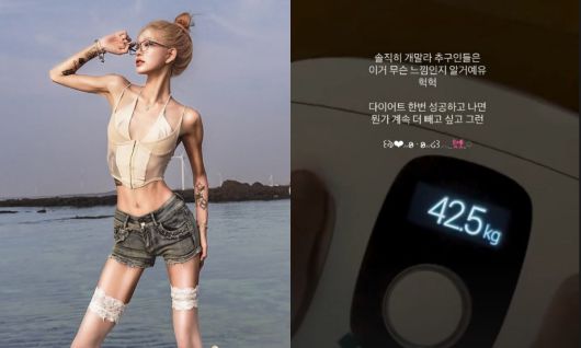 공개된 사진에는 식당에서 포즈를 취한 모습과 함께 체중계 화면을 촬영한 이미지가 담겼다. 체중계에는 42.5㎏가 표시돼 눈길을 끌었다.