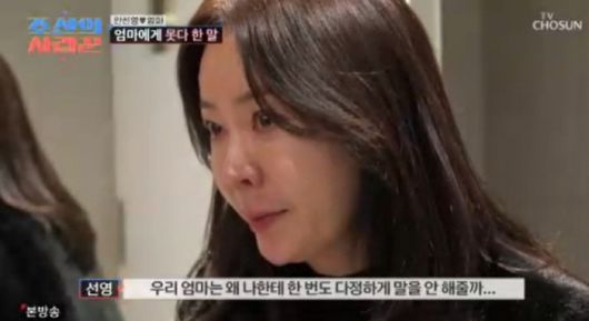 [스포츠조선 조민정 기자] '조선의 사랑꾼'에서 방송인 안선영이 치매 투병 중인 어머니를 향한 절절한 마음을 전하며 안방을 울렸다.