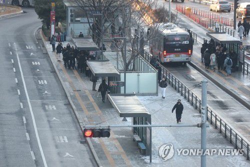 (서울=연합뉴스) 류영석 기자 = 서울 시내버스 노동조합이 무기한 전면파업에 돌입한 13일 서울역 버스환승센터 광역버스 정류장에서 시민들이 광역버스를 기다리고 있다. 2026.1.13