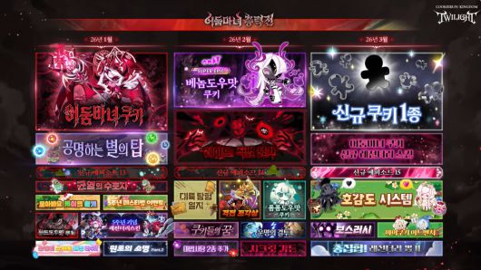 이 밖에 디펜스 미니 게임 '균열의 수호자'에 인피니티 모드 추가 어둠마녀 성 스킨 및 전경 스킨 쿠키 최대 레벨 100레벨로 확장 등의 콘텐츠를 업데이트할 계획이다.